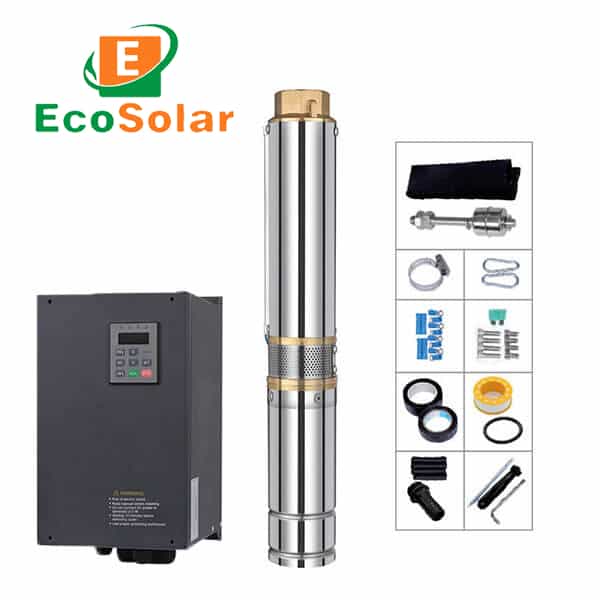 Những chiếc bơm hỏa tiễn đặt giếng khoan, hồ chứa chắc hẳn không còn xa lạ với bà con. Ngoại hình nhỏ gọn, tiện dụng, bơm dễ dàng làm việc trong môi trường nước vẫn đảm bảo hiểu quả, độ bền. Thông thường bà con đã quen với những chiếc bơm hỏa tiễn chạy bằng điện đầy ưu việt, nhưng hôm nay ECO Solar sẽ giới thiệu cho bà con chiếc bơm hỏa tiễn cực kỳ đặc biệt. Bơm hỏa tiễn Hybrid 4HP – 3000W chạy bằng năng lượng mặt trời. Ngạc nhiên chưa!. Với sự ra mắt của dòng bơm năng lượng mặt trời này, mọi nhà nay bỏ túi cho mình thêm sự lựa chọn tuyệt vời cho cấp nước. Đặc điểm nổi bật của dòng bơm này chính là hoạt động hoàn toàn thân thiện với môi trường, không gây ô nhiễm nhờ sử dụng chính năng lượng mặt trời để chạy. Công suất bơm đa dạng, với mỗi phân khúc sẽ phục vụ nhu cầu riêng cho từng trường hợp