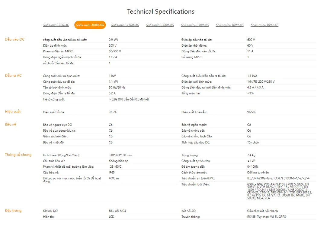 Dòng Inverter 1 Pha Solis-Mini là người dẫn đầu nguồn điện xanh trong các dự án điện mặt trời áp mái nhỏ cho nhà ở và thương mại, giá cả phải chăng. Áp dụng đủ các kĩ thuật điều khiển kĩ thuật số, có cấu trúc topo tiên tiến, và thuật toán MPPT chính xác, có hiệu suất cao hơn hiệu suất thiết bị các hãng dẫn đầu trong nghàng với hiệu suất tối đa 97.5%. Trong khi có tích hợp nhiều tính năng bảo vệ, công nghệ chuyển tần số siêu cao.
