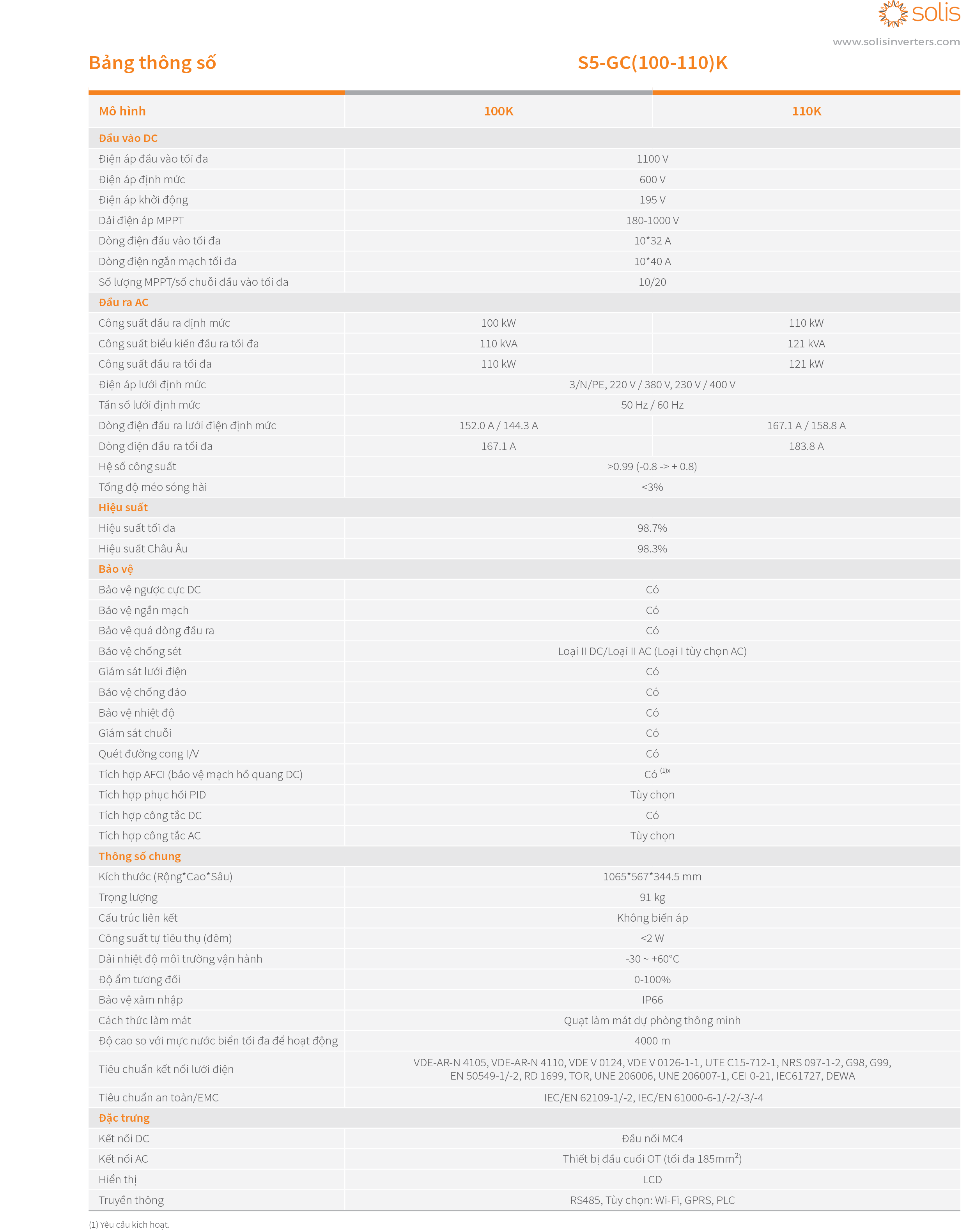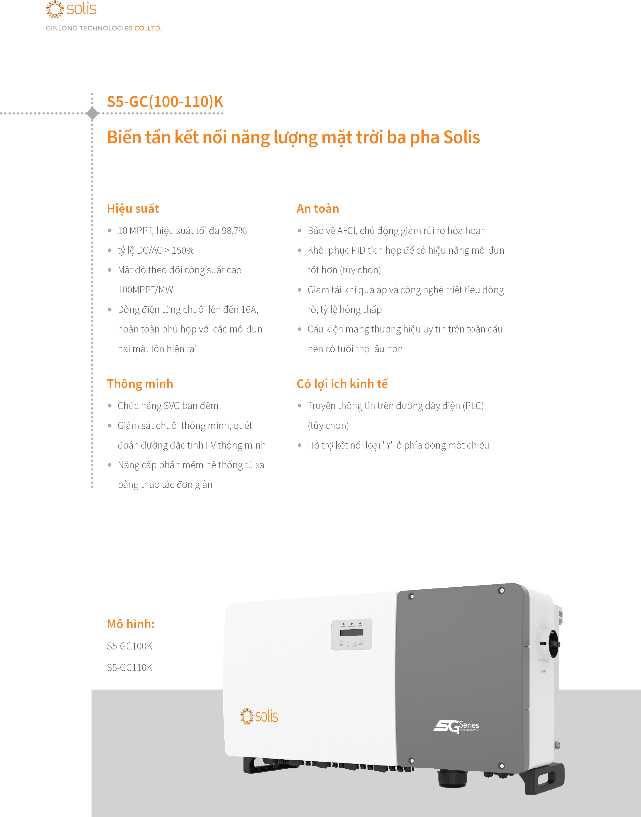 Biến tần chuỗi ba pha S5-GC 100K áp dụng thiết kế 10 MPPT để cung cấp một sơ đồ cấu hình linh hoạt hơn với tỷ lệ tác động môi trường nhỏ hơn và hiệu suất phát cao hơn. Chống cộng hưởng, hỗ trợ hơn 6MW song song trong một máy biến áp, giám sát các chuỗi thông minh, hỗ trợ chẩn đoán đường cong I-V thông minh