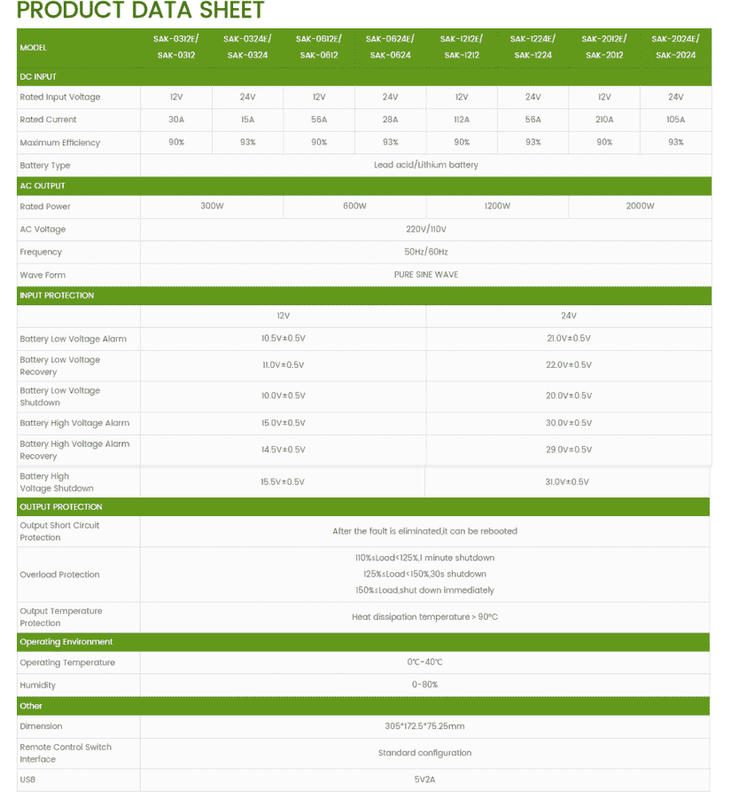 Thông số kỹ thuật Inverter Kích Điện Sin Chuẩn Sumry 1200W – 24V