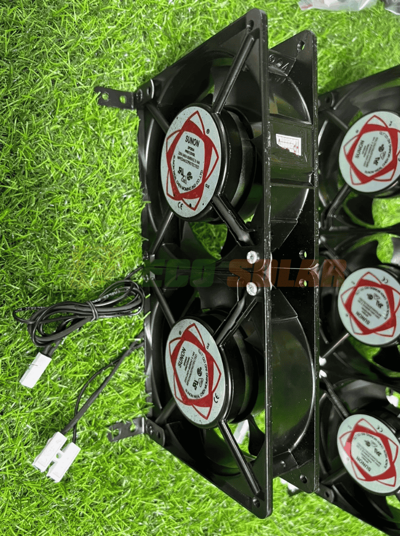 * Dải nhiệt độ hoạt động trung bình của Inverter hòa lưới từ -25 … + 60 độ C nhưng thực tế có nhiều máy hoạt động trên 60, 70, 80 độ C … (nguyên nhân có thể do môi trường, khu vực lắp đặt…) Về lâu dài sẽ ảnh hưởng đến tuổi thọ cũng như hiệu suất của Inverter….Đừng lo chúng tôi đã cho ra đời sản phẩm quạt tản nhiệt Inverter hòa lưới được sử dụng để tạo gió làm mát cho Inverter
