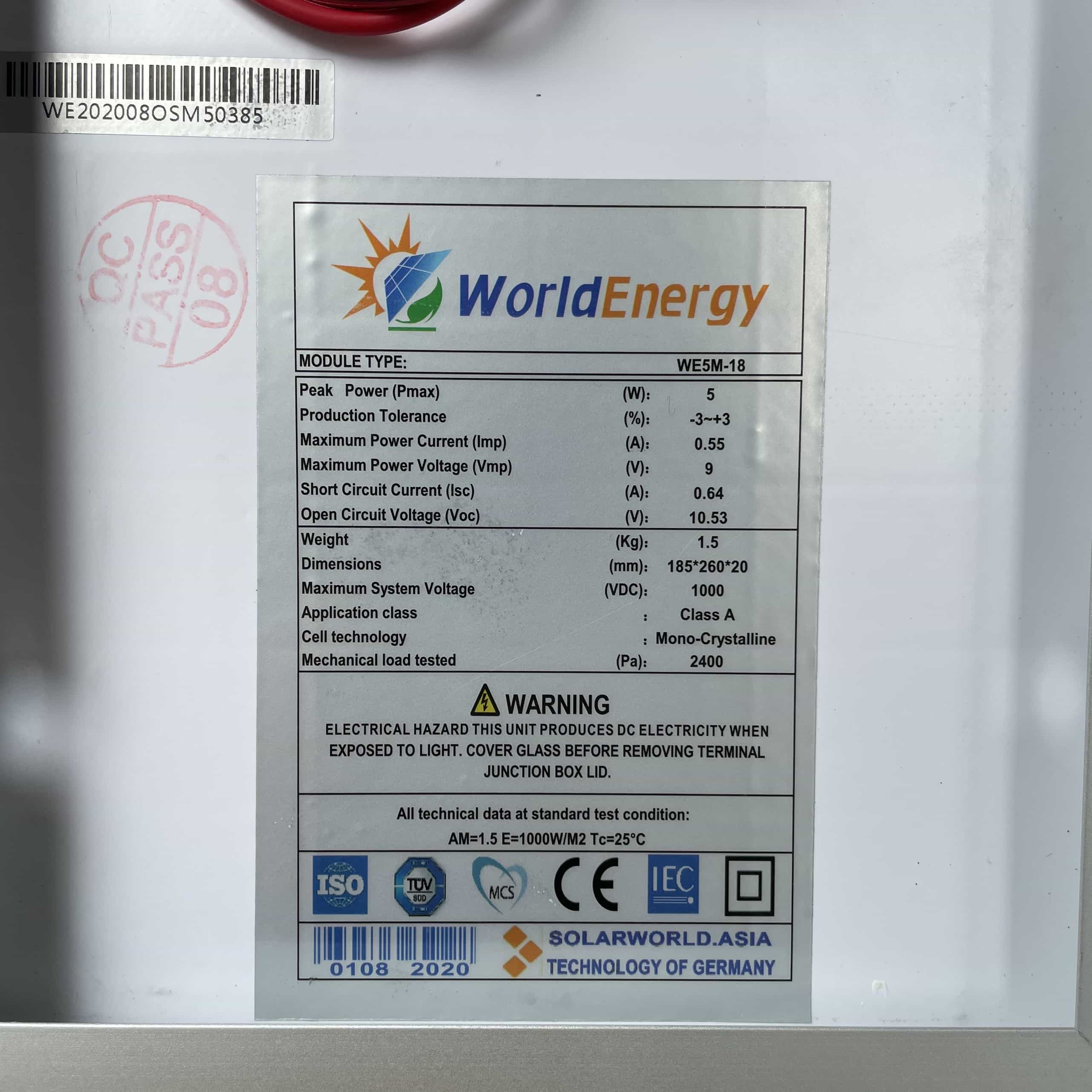 TẤM PIN MẶT TRỜI MONO 5W WORLD ENERGY